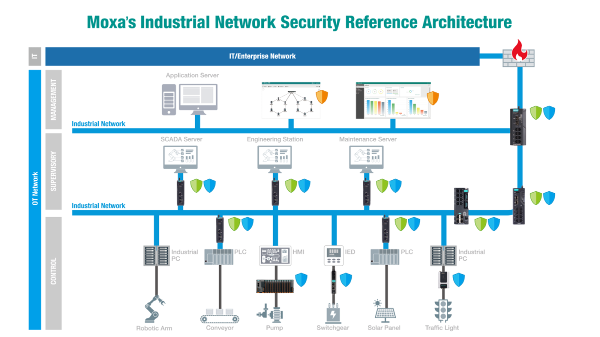 MXview One von Moxa ist eine webbasierte Netzwerkmanagement‑Plattform für industrielle Netzwerke, die eine zentrale Übersicht, Überwachung und Verwaltung von Moxa‑Geräten sowie weiteren SNMP/IP‑Komponenten bietet. Sie visualisiert Topologien, erkennt Geräte automatisch, überwacht Verfügbarkeit und Traffic, verwaltet Konfigurationen und Firmware zentral und unterstützt Alarme, Berichte sowie RESTful APIs – für eine transparente, effiziente Betreuung komplexer Industrial‑Ethernet‑Infrastrukturen.